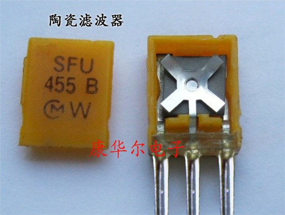 這個全身黃通通的叫什么名字,沒錯他就是陶瓷濾波器,應用于收音機,也可以稱之為,收音機濾波器,主要作用是過濾外來信號頻率的,大家看到沒有它的內部像風車一樣,那個是它的心臟支架.不過這款晶振市場上已經不常用了.